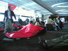 I am writing this now in one of the Bean bag areas on Moscone Center, who are very comfortable and are a good spot to work on.
