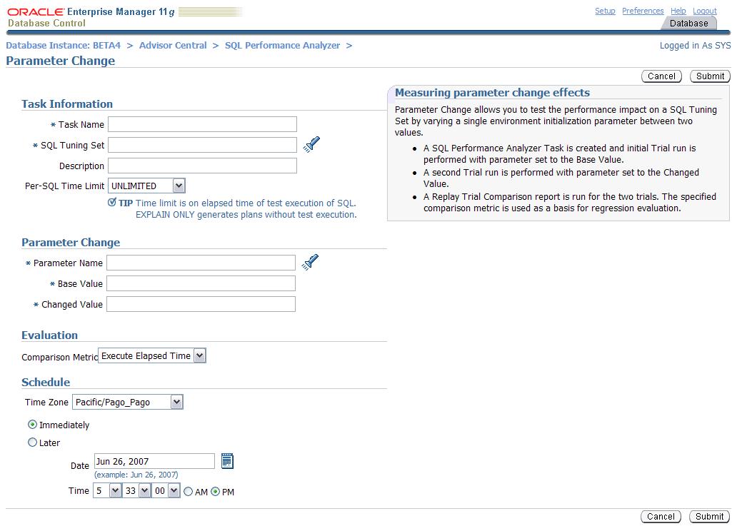 The screen is identical as the one in step 2. This time, becoming brave, I set the Per-SQL Time Limit on UNLIMITED and clicked again on “Submit”.