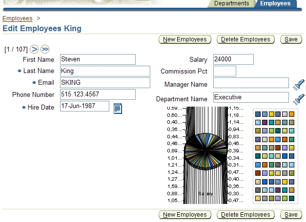 Following the instructions in the JHeadstart Developers Guide in the section "Generating a Graph", I created a graph item based on the Employee Salary in the JHeadstart Application Definition Editor (ADE). The result of this generation is shown in the following image