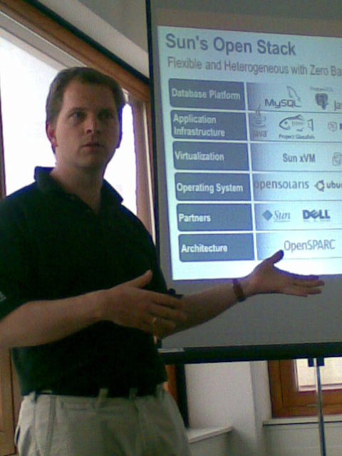 The GlassFish and OpenESB session we hosted yesterday was very interesting. Alexis Moussine-Pouchkine, Java Architect at Sun Microsystems in France and GlassFish Evangelist (though he is none too happy the epitaph evangelist) presented a strong case for the GlassFish application server. For example as a contender for the number one spot for open source application servers, clearly challenging JBoss. And as an enterprise level JEE server with many additional components for for example SOA, Comet style Web Applications etc.