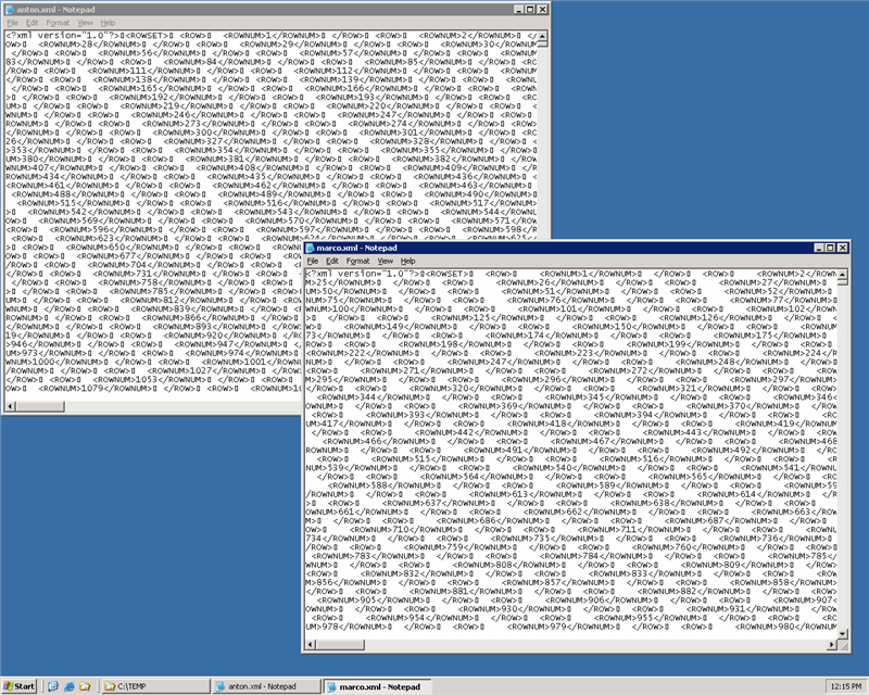 So the second method, based on DBMS_XSLPROCESSOR.CLOB2FILE looks faster, plus it produces files smaller in size then the DBMS_XMLDOM method. Have a look at the sizes and the layout format below.