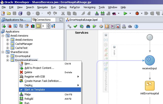 This post is about a feature in Oracle’s SOA Suite / JDeveloper 10.1.3.x that may easily go unnoticed: the option to publish a BPEL process as a template by using the Mark as Template option in JDeveloper.