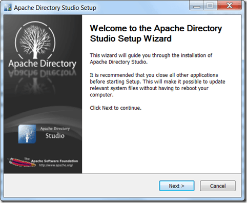 After successful installation, run Apache Directory Studio: