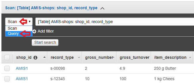 In the previous examples, we sometimes stepped from “Scan” (to get all data from the table) to “Query” (to get one specific item) and back.