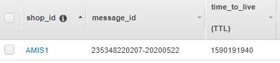 In the AMIS-shops-message-ids table, you will see the following record: