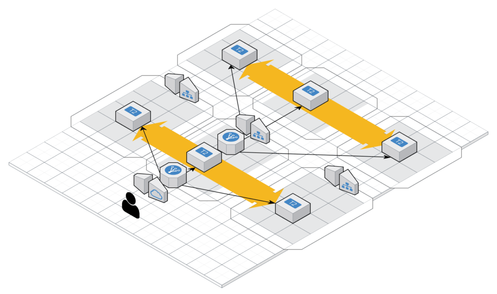 The solution that is deployed is not that complicated: there is a VPC with an internet gateway, three public subnets and three private subnets. There is one public and one private subnet per availability zone. The private networks are connected to the public networks with one NAT gateway per public network, to ensure high availability for each of the AZ’s. Routing tables and security groups are created to allow traffic to go from and to the EC2’s.
