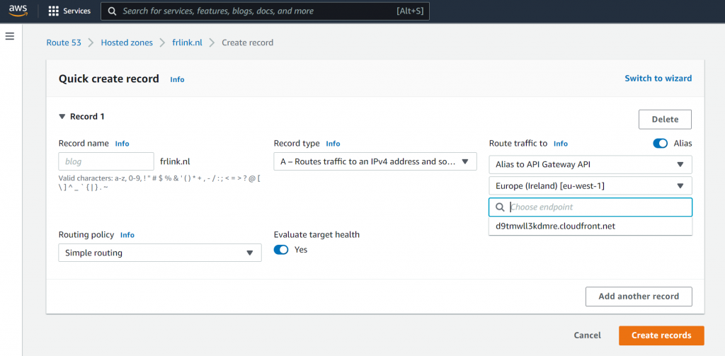 Though it is possible to automate the deployments of certificates and Route53 records, I didn’t do that.