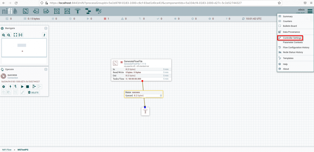 In NiFi you can add reporting tasks to provide an external system with metrics. First you go to the Controller Settings;