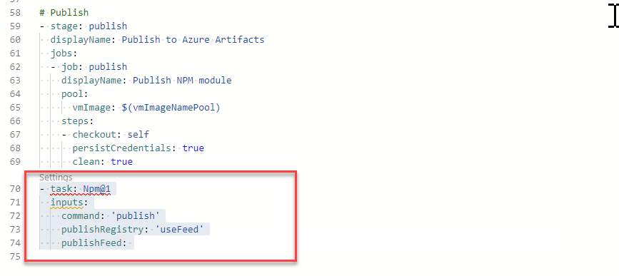 # Stage 'publish' publishes the NPM module to Azure Artifacts