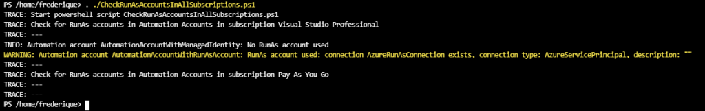 [2] See for sources in my GitHub repository https://github.com/FrederiqueRetsema/AMIS-Blog-Azure-2021 , directory “Check for RunAs accounts in Automation Accounts”