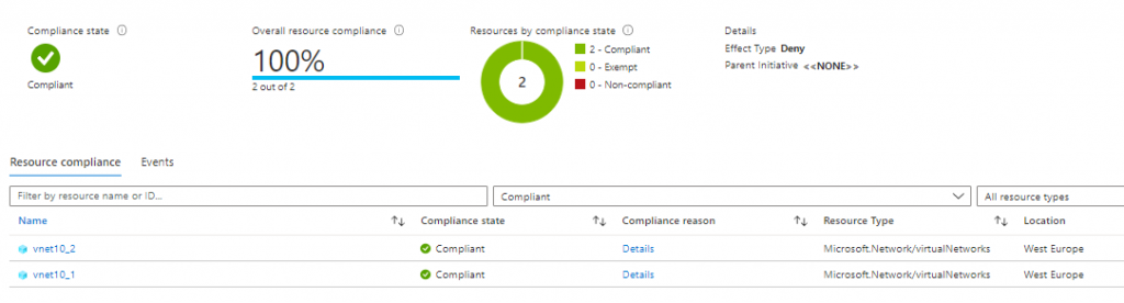 When I used this policy, I would expect that the policy would prevent me from switching on the switch again. Unfortunately this didn’t happen. Even though there is a deny in this policy, the switch could be toggled and the settings could be saved. I think this might be a bug. Having a policy to know that this is not compliant or that has been changed is a nice feature anyway.
