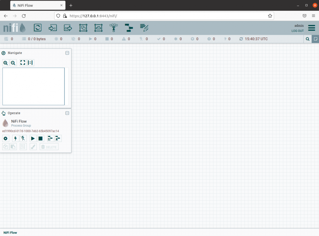 After it is complete, you can open Firefox and go to https://localhost:8443/nifi and login using user admin and password Welcome010101 (it was required to be at least 12 characters long). Ignore the certificate errors (the certificate used is self-signed) and have fun!