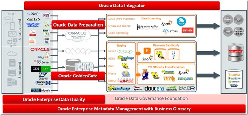 As part of this (r)evolution, Oracle Data Integrator 12.2.1 has come out in October 2015. Big Data support is an important area in this new release, following up on the ODI for Big Data release of April 2015. Data access is supported in many sources, using an array of native data access languages and protocols (including HCat, Sqoop, Kafka, Big Data SQL). Transformation engines are available in various Big Data technologies such as Hive, Apache Spark, Apache Pig. Oozie can be used for orchestration of the process. In line with NoSQL, Oracle has coined the term NoETL engine around this ODI for Big Data. The beta program has started for ODI Streaming ETL (on Spark Streaming).