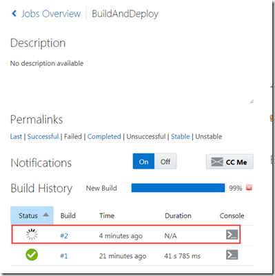 Now the Git repo has been updated, the build job should be triggered: