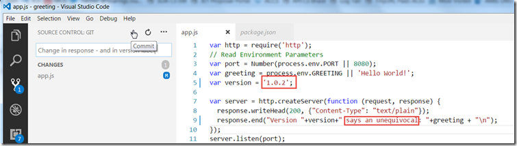 Make the change – a new version label and a small change in the text returned by the application.