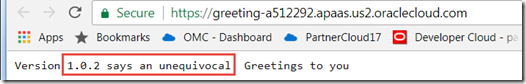 The ACCS console shows that now we have Version 2.0, deployed just now.