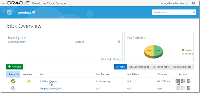 Run the build job – and verify that the application will be deployed to ACCS (again)