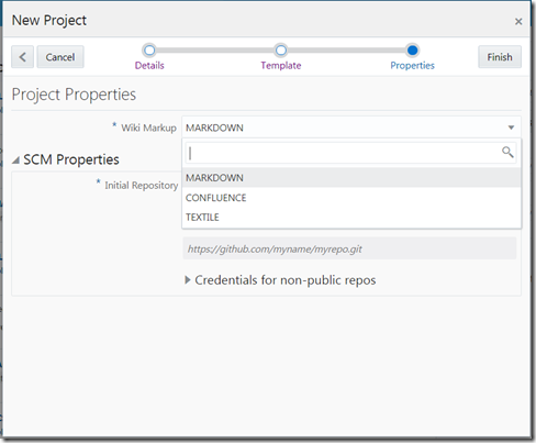 After you press Finish, the new project is initialized along with all associated resources and facilities, such as a new Git repository, a Wiki, an Issue store.