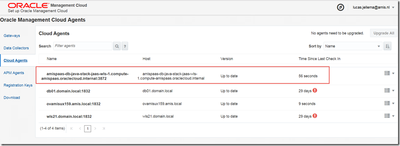 At the moment, the OMC agents are not automatically deployed and configured when a new instance of JCS or DBaaS is provisioned. I would expect Oracle to very shortly provide that option, at least as part of a cloud stack. That means that we have to take care of our own provisioning on JCS of the Cloud Agent that collects and posts the log file entries to OMC Log Analytics (and likewise the APM Agent). The steps are similar to the actions that need to be taken on premises.