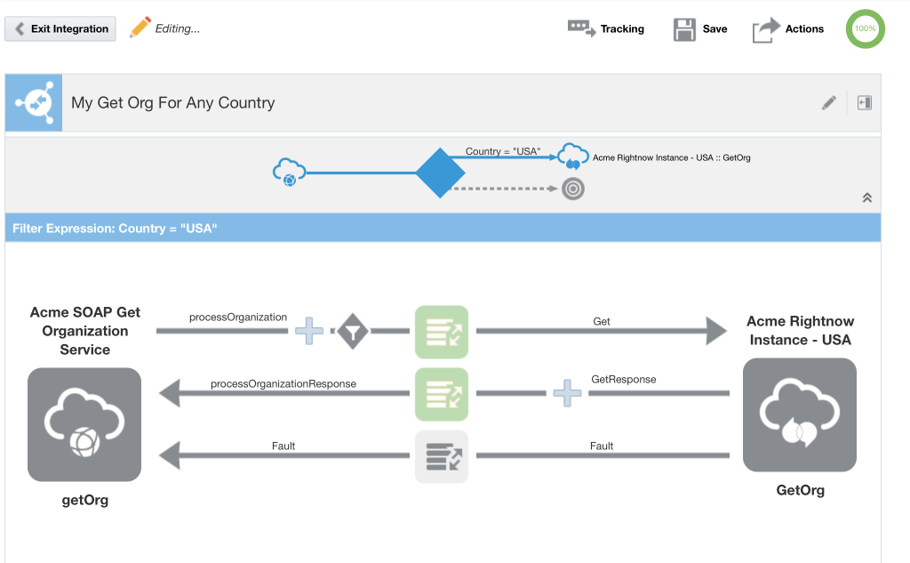The fall updates introduced content-based routing, which essentially mean that based on a value in the payload a different flow is executed. A use-case for this type of routing is the possibility to retrieve data from a different application based on the country code. With Integration Cloud Service is as easy as adding a filter on the request operation of the source connection.