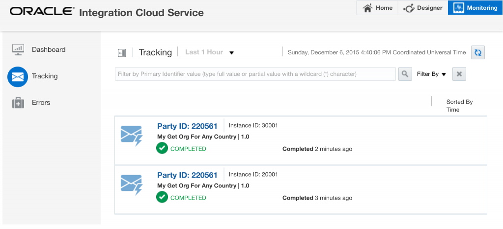 With the monitoring capabilities the instances of the two calls can be tracked. A user can view a list of tracked instances by navigating to the tracking page.