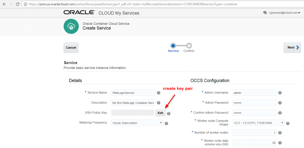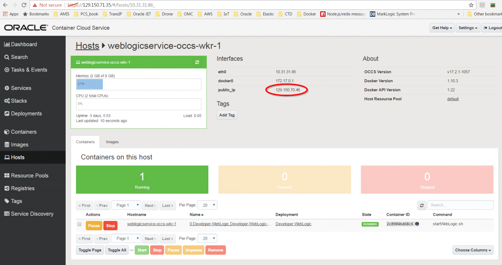 With the Oracle Container Cloud Service up and running, we can start running the WebLogic image that we have in Docker Hub. The following has to be done: