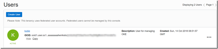 You can reuse an existing user or create a fresh one – which is what I did. This step I performed in the OCI Console: