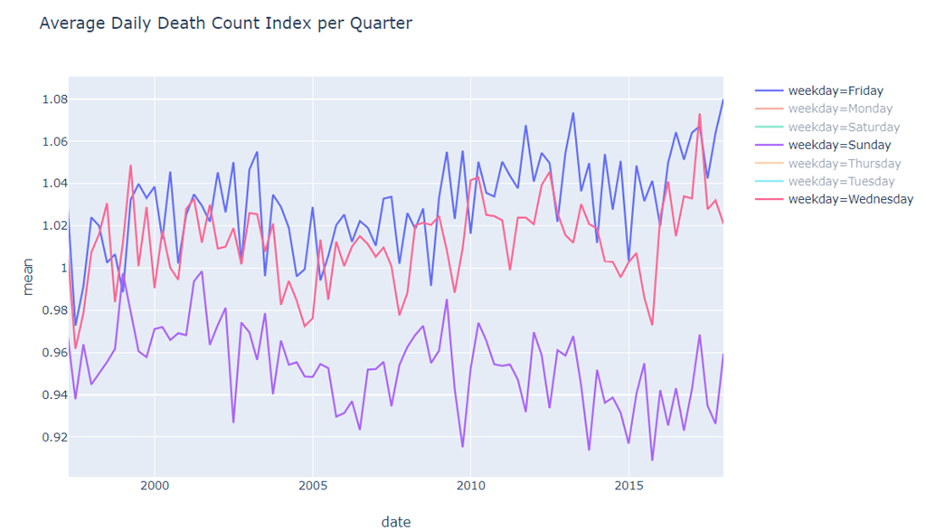 And finally this bar chart with the total number of deaths – that confirms the previous finding about the days of the week: