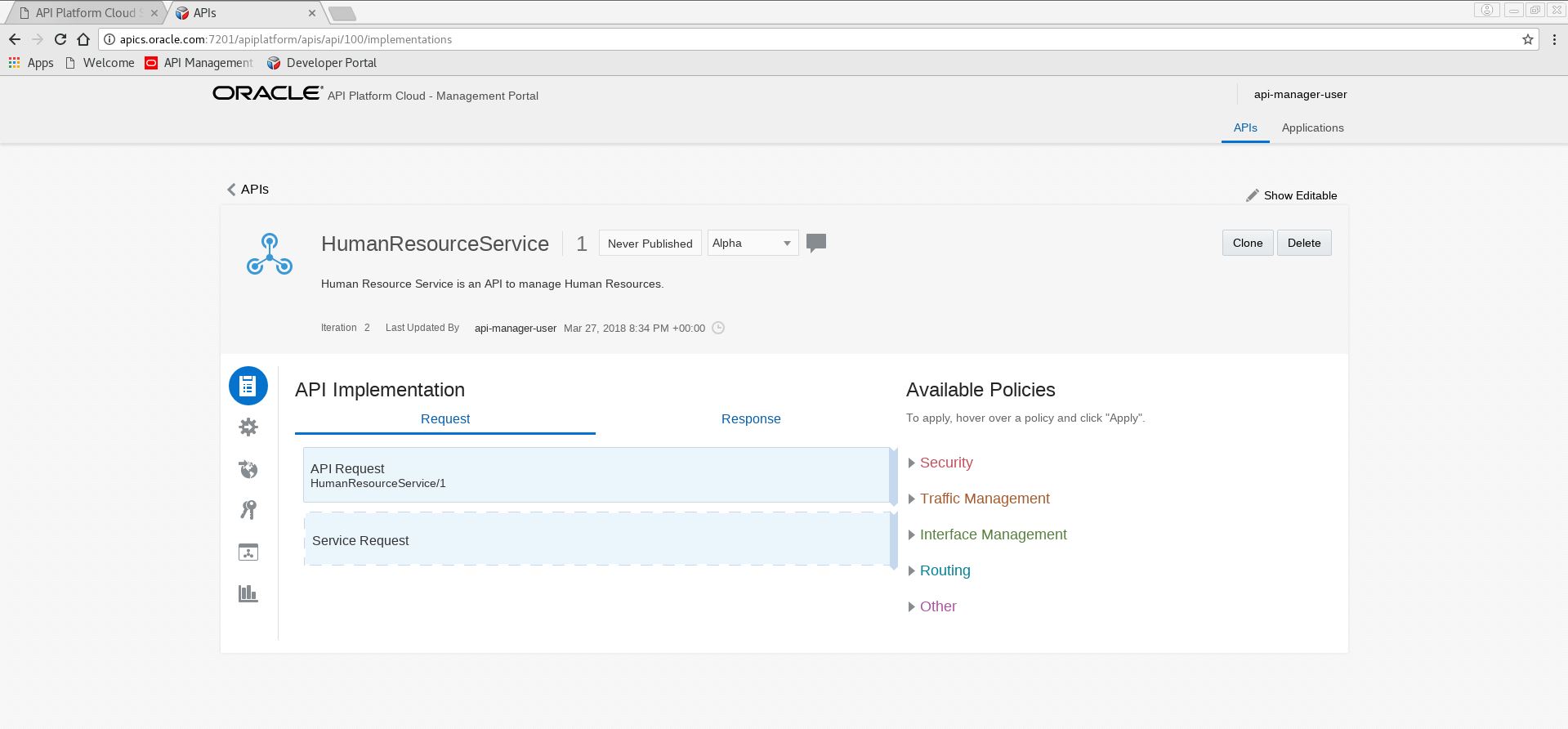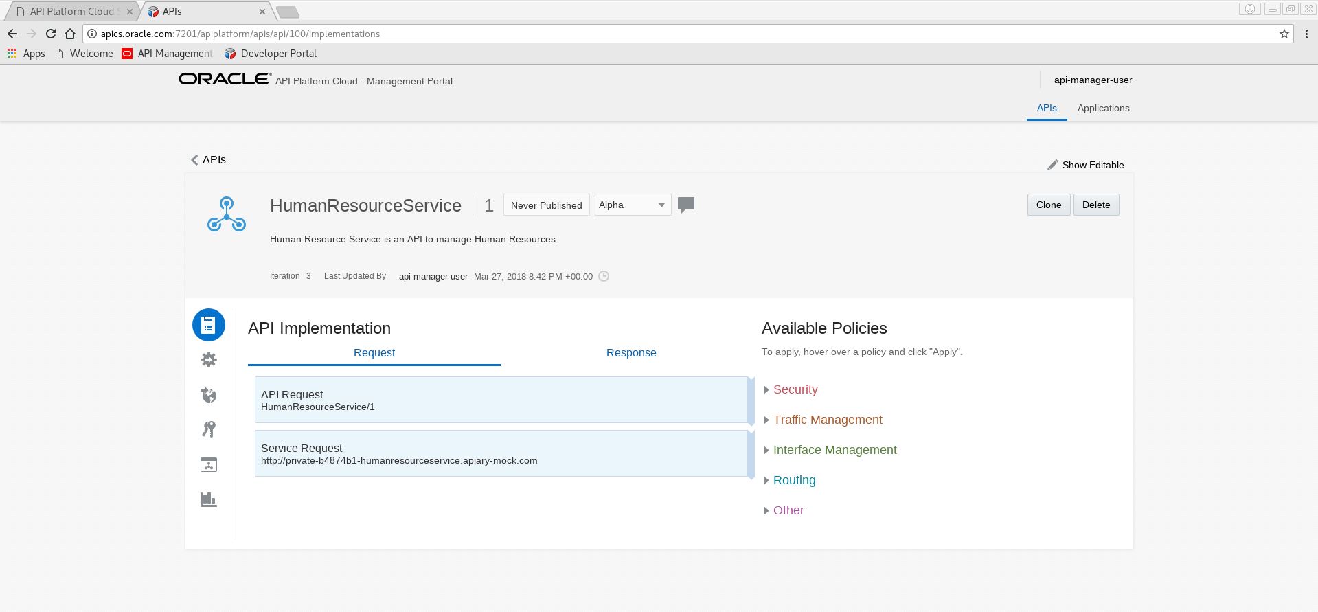 As a follow up from my previous articles about Oracle API Platform Cloud Service, in this article the focus is on using the Management Portal and Creating the “HumanResourceService” API (including some policies).