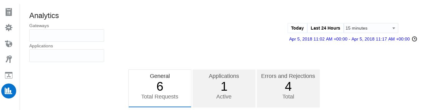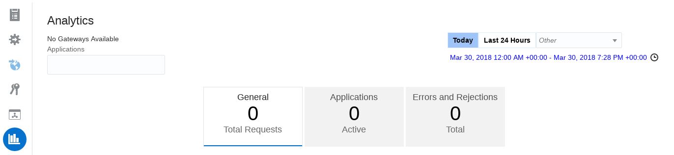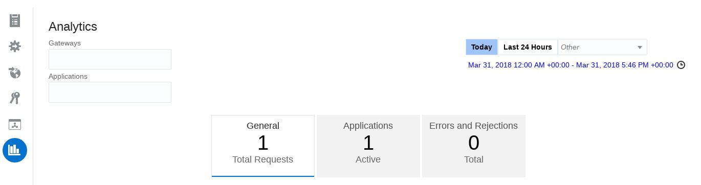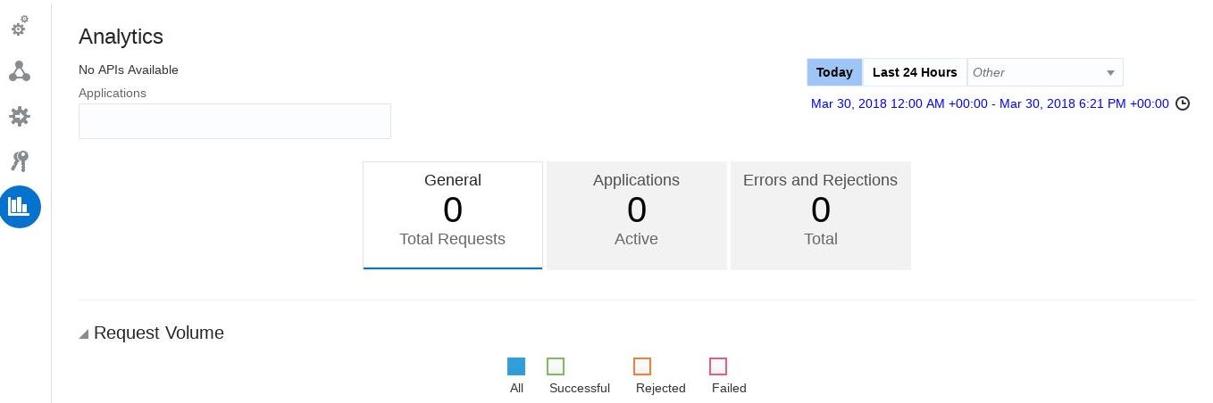 In the top right of the Oracle API Platform Cloud – Management Portal sign in as user api-gateway-user and click on the “Production Gateway” gateway and navigate to the tab “Analytics”.