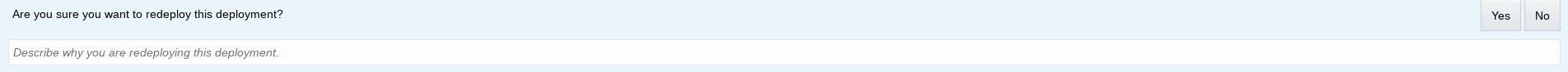 In the pop-up, click on button “Yes”. For a short while a pop-up “Redeploy request submitted” appears.