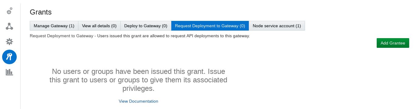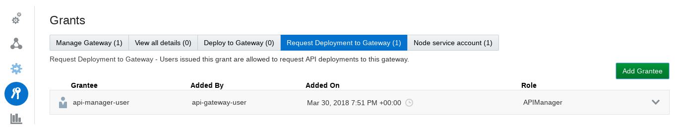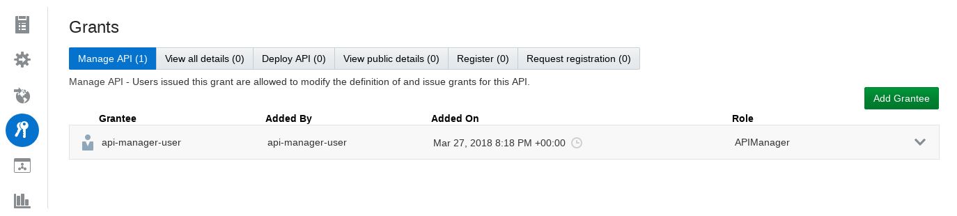 Users issued this grant are allowed to deploy or undeploy this API to a gateway for which they have deploy rights. This allows users to deploy this API without first receiving a request from an API Manager. - View public details
