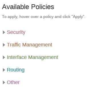 As an example I have created two policies: Key Validation (Security) and Interface Filtering (Interface Management).