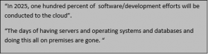 It is however a bit vague what Mark Hurd means by ‘cloud’ (presumed to be public cloud) or ‘on premises’ (local datacenter, legacy and/or private cloud). The direction is quite clear: on premises is old school and most announcements are directly related to these statements, perhaps leaving a lot of the existing on premises customers somewhat abandoned.