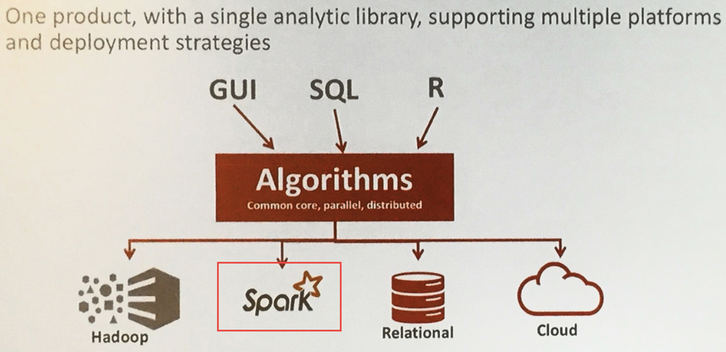 Machine Learning – one of the popular themes – is typically driven from large data volumes that arrive in real time and have to be captured and analyzed to derive models from. Once the models have been derived, real time data – events- is analyzed and fed into the models in order to predict outcomes and/or derive recommendations. In both stages, Kafka can play a role, as is illustrated by this next screenshot.