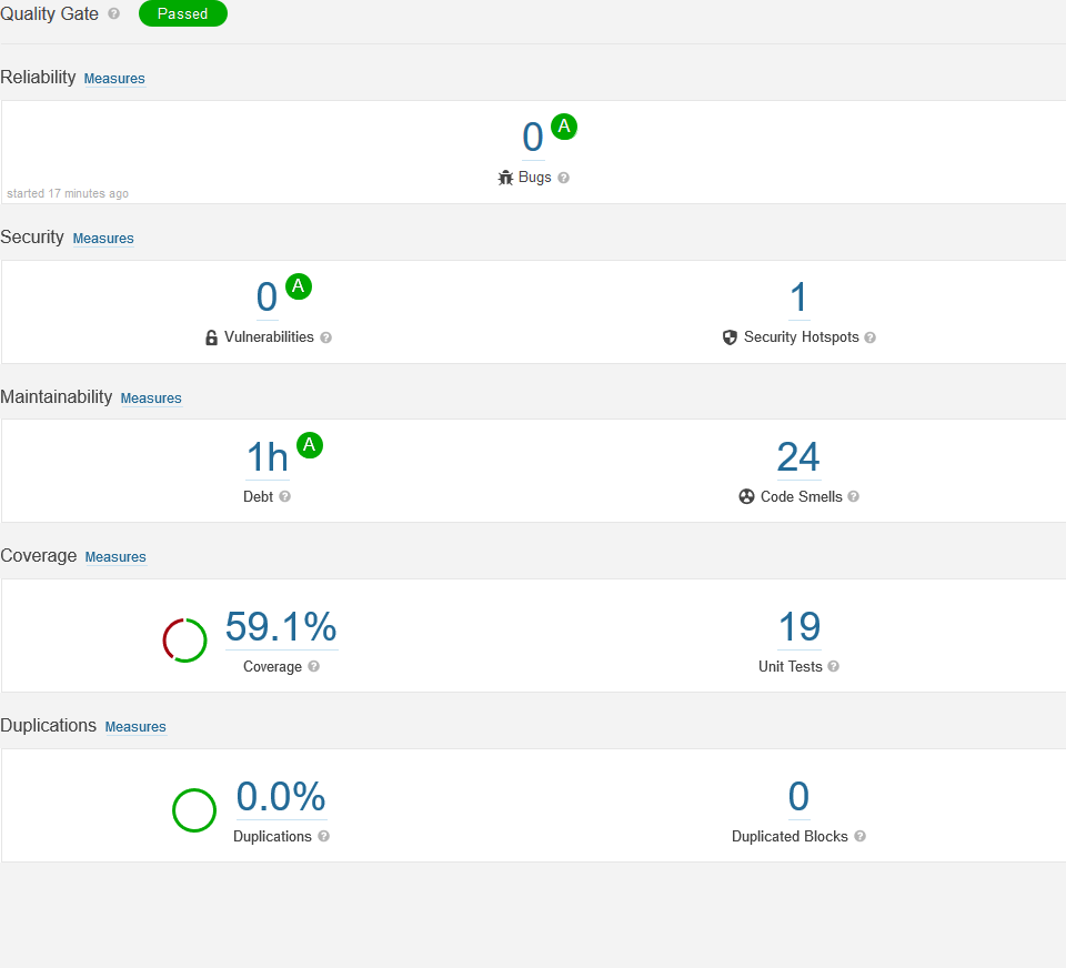 - That’s it! If you push to your repository now you’ll see that sonarcloud is integrated in your pull requests (if this is supported) and analyses your master branch on a push master.