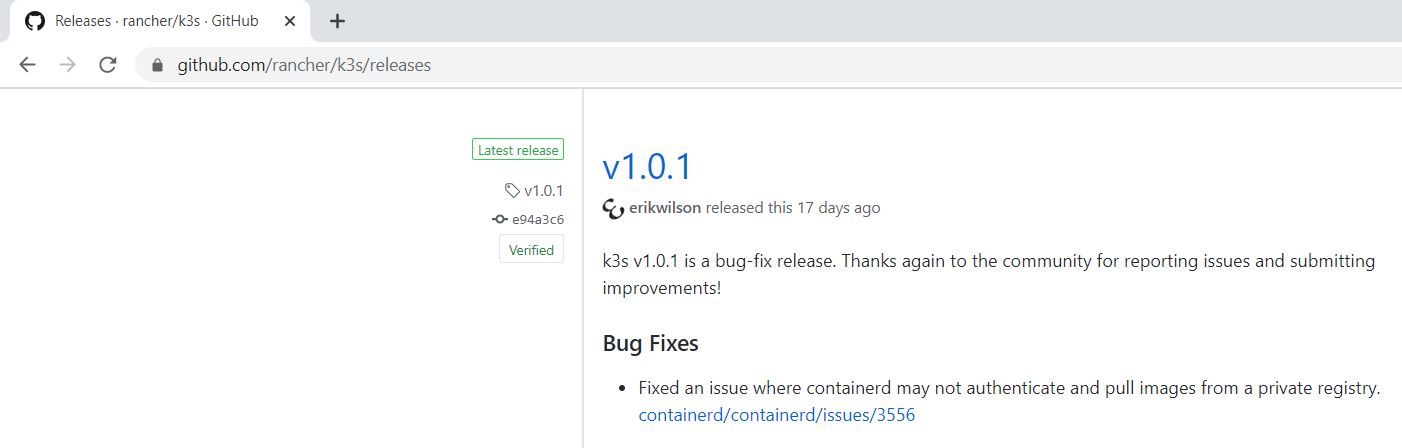 curl -sfL https://get.k3s.io | INSTALL_K3S_VERSION=v1.0.1 sh -