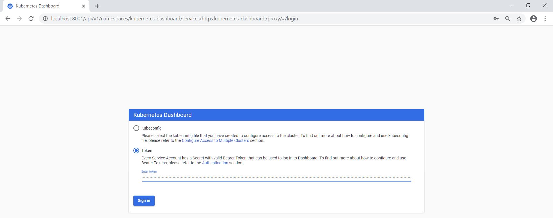 In the Web Browser on my Windows laptop, I entered the value for the token (seen above) and clicked on button “Sign in”.