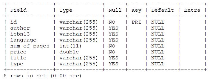 The Spring Boot application I created in the article is a book service. With this service you can add, update, delete and retrieve books from a catalog.