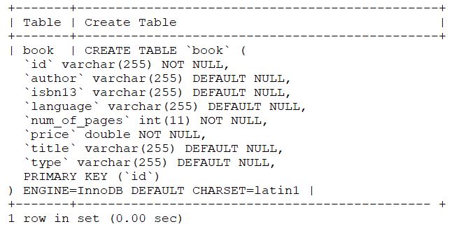 Of course, this automatic schema generation is very convenient in a development environment. In my case the test database and the book table are automatically created.