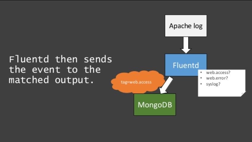 - The tag is a string separated by ‘.’s (e.g. myapp.access), and is used as the directions for Fluentd’s internal routing engine. → Where an event comes from