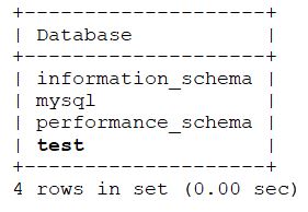 - setting up a MySQL database named test.