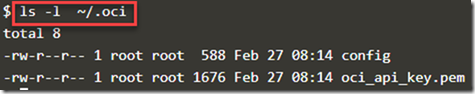 It turns out that there is a third way for the OCI provider to know how to connect to a tenancy – and this is exactly the same way as used by the OCI Command Line Interface. The configuration file and private key file that you typically set up for using the OCI CLI can be leveraged by the Terraform provider for OCI as well. The files have to be called config and oci_api_key.pem and they have to be located in the directory ~/.oci.