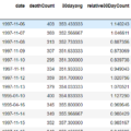 I want to aggregate: grouping by day of the week, I want to calculate the mean value for deathCount, and I want to present the results order by day of the week – the categorical ordering, not the lexical ordering.