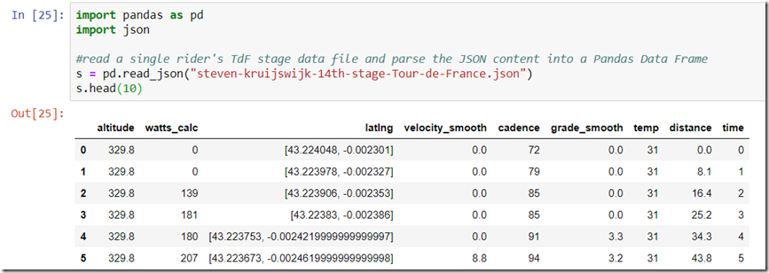 The raw JSON files with Strava data as well as the Jupyter Notebook under scrutiny are in this GitHub repository: https://github.com/lucasjellema/data-analytics-strava-tour-de-france.
