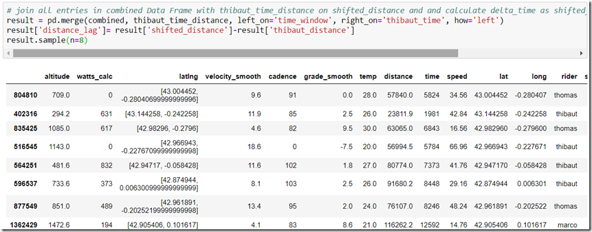 Tour de France Data Analysis using Strava data in Jupyter Notebook with Python, Pandas and Plotly – Step 2: combining and aligning multi rider data for analyzing and visualizing the Race image 60