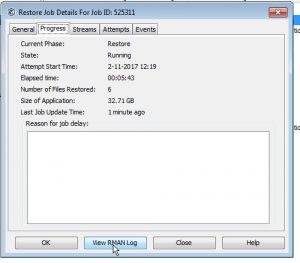 Find the restore job in the list of running jobs. Click on this job to get the details of this running job: