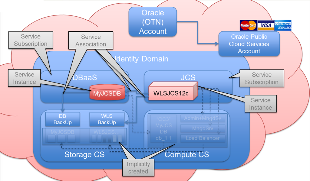 - (do: 5 minutes | then wait: days up to months) Get a [Trial] Subscription to the Oracle Database Cloud – Database as a Service – for your Oracle account (the same one you use for OTN and any other interaction with Oracle); an Oracle Database Public Cloud Services trial environment or purchased subscription comes with Oracle IaaS Public Cloud Services, which provides you access to Storage CS and Compute CS – both of which underpin the Database instance