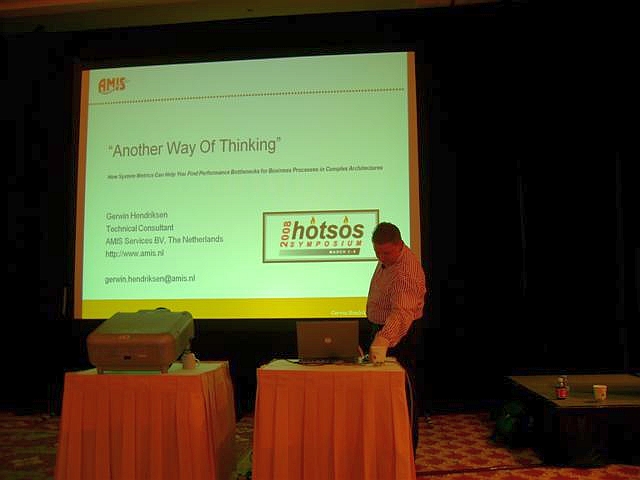 Gerwin did a good job with his presentation “Another Way of Thinking”. He presented the content regarding GAPP (General Approach Performance Profiling) with a lot of confidence. As said before, GAPP is a performance profiling approach that makes use of easy to obtain performance markers that gives insight in the broad spectrum of a business process / architecture. Although still in concept, and you will have to fulfill to some restrictions, it has the promise to being able to predict architecture behavior and/or find the most intrusive performance drains in the system. Even in nice discussions at the end with Neil Gunther, the presentation withstood the critics. Maybe the story still needs some tweaking but the content stands and Gerwin the a hell of a job during his first presentation here in Dallas.