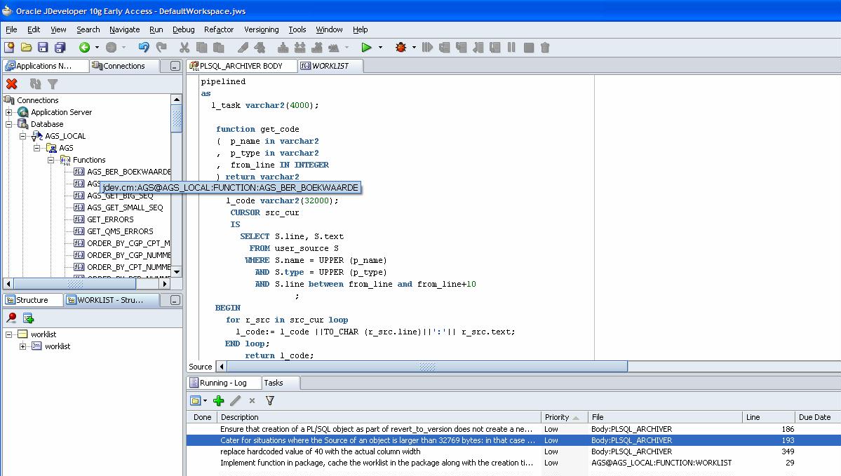 First of all, that the automatic self tuning new 10g features are great but they have a buildin drawback. Until now, Steve pointed out, the standard (not so OK) way was to create a working application on a database, and then afterwards look for how to tune the database (performance wise) to handle the application performance imperfections. Until now you could, most of the time, find on database level, ways to tune and improve performance. On Oracle 10g this is not so likely anymore – the database will be almost at it’s peak performance. If you have to increase performance, it will be hard to achieve and/or find workarounds for bad architectual design/testing/etc. This could, and will, result in more applications, which won’t perform on the workfloor.